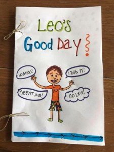 My very good friend is an early childhood educator and told me about social stories. So, I grabbed some blank paper, markers and a pen and started writing. The story was called “Leo’s Good Day” and I drew a picture of him wearing his favorite outfit in his favorite color. The story and accompanying illustrations were all about what we expected of him during his time in his classroom, and what he absolutely cannot do (biting, hitting, etc.).